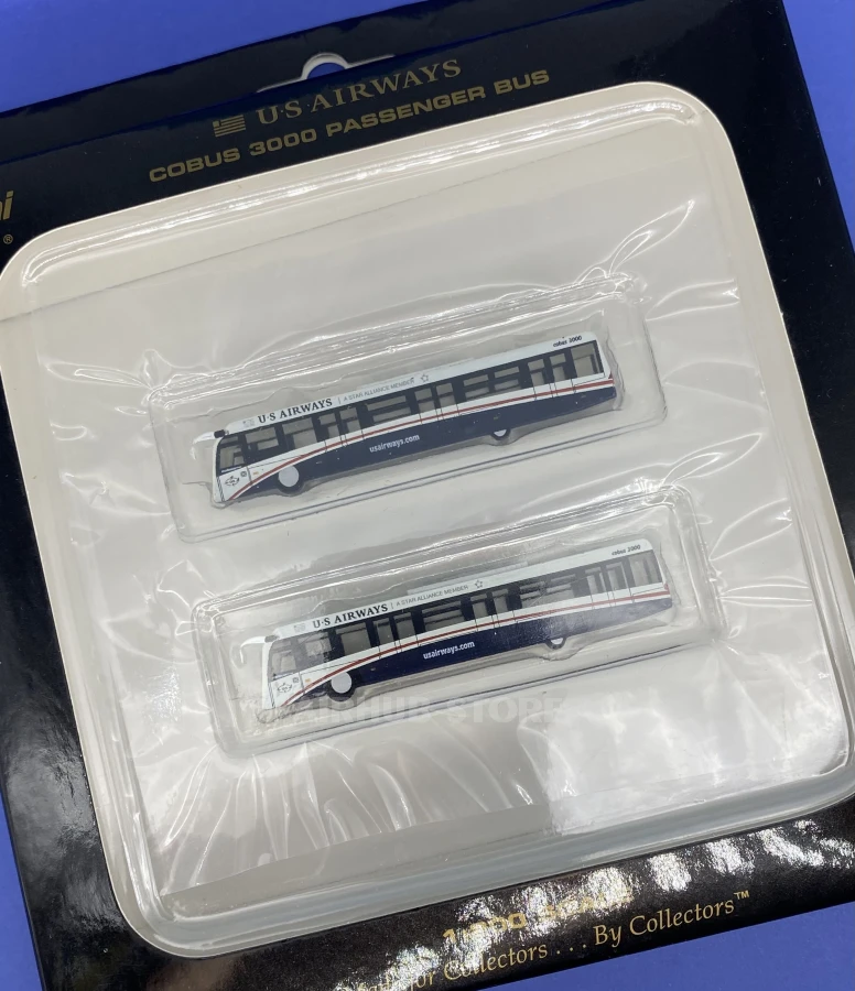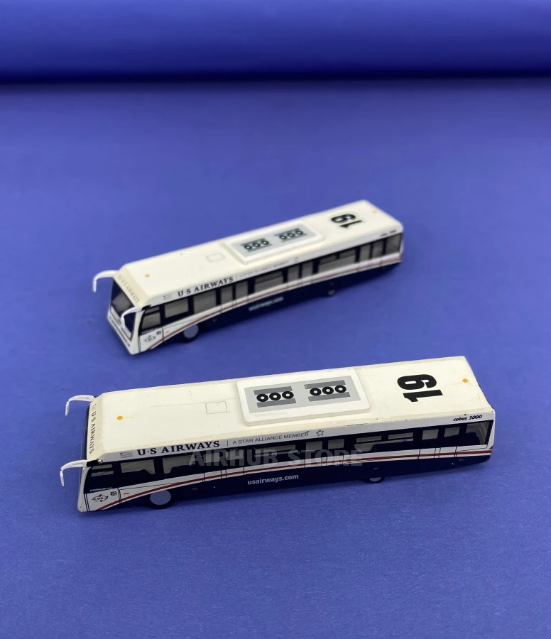 The 2in1 set in 1:200 scale includes two buses that reproduce the real Cobus 3000 in detail: a body with characteristic windows, doors and airline livery. They are perfectly combined with 1:200 scale aircraft models, adding authenticity and atmosphere of a real airport to the collection.