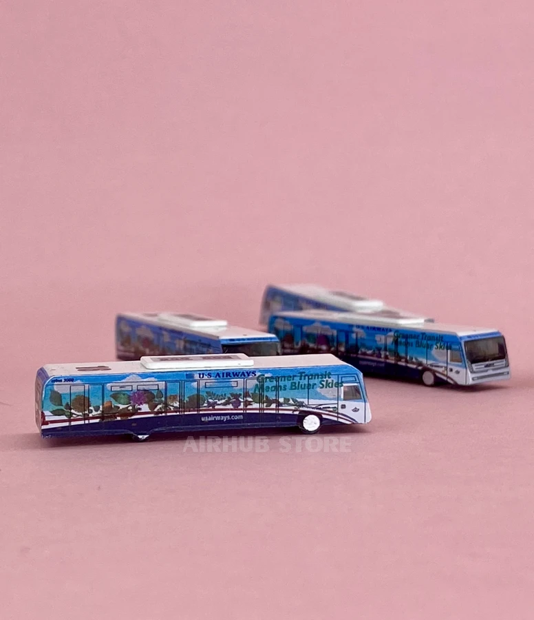Set of 4 Cobus 3000 buses in U.S. Airways livery. Scale 1:400, ideal for GeminiJets aircraft models and others in 1:400 scale.