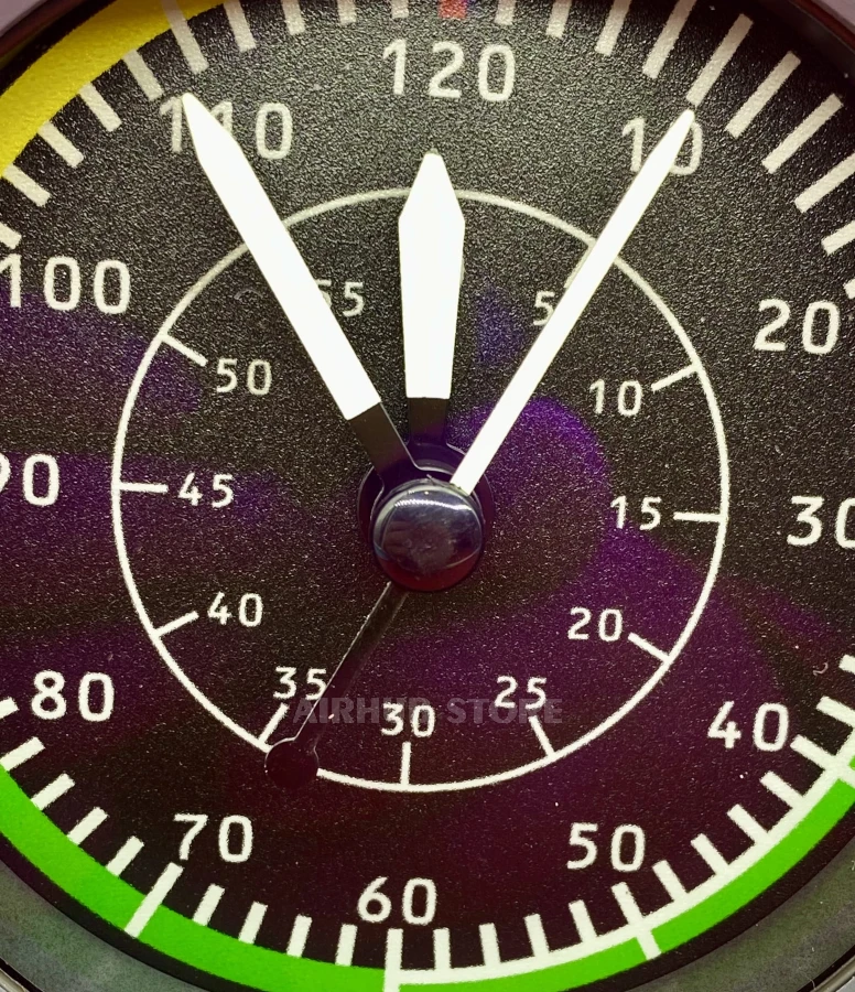 An aviation alarm clock in the form of an airspeed indicator is a stylish decoration for a pilot's room or office. It visually resembles a device with LED backlight when pressed. A perfect combination of aviation design and practical functionality.