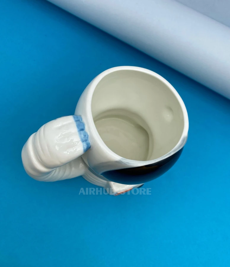 This mug is designed in the shape of a cosmonaut wearing a helmet, which forms the drinking vessel itself. The design is inspired by classic images of astronauts and combines a playful form with practical use. The ceramic mug has a voluminous handle in the shape of a spacesuit sleeve and a detailed body that looks like a miniature figurine. This makes the cup look impressive both on a desk and on a kitchen shelf.