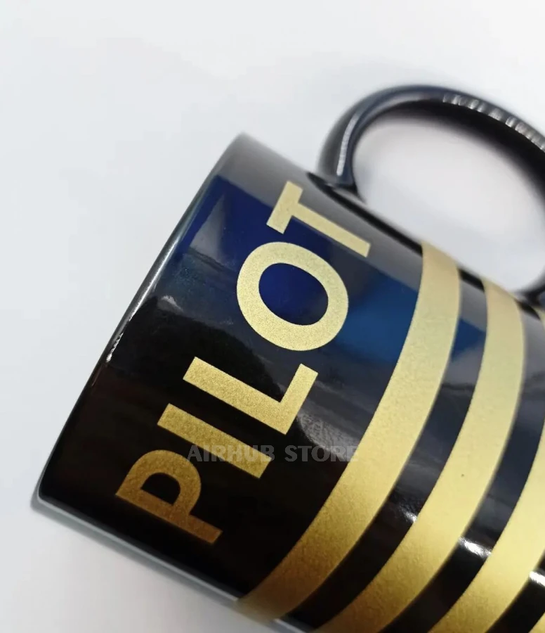 Ceramic mug with the inscription PILOT and golden stripes - a symbol of the captain's rank. An ideal accessory for civil aviation pilots, cadets and anyone who dreams of the sky. Durable coating, laconic design and a sense of profession in every sip.