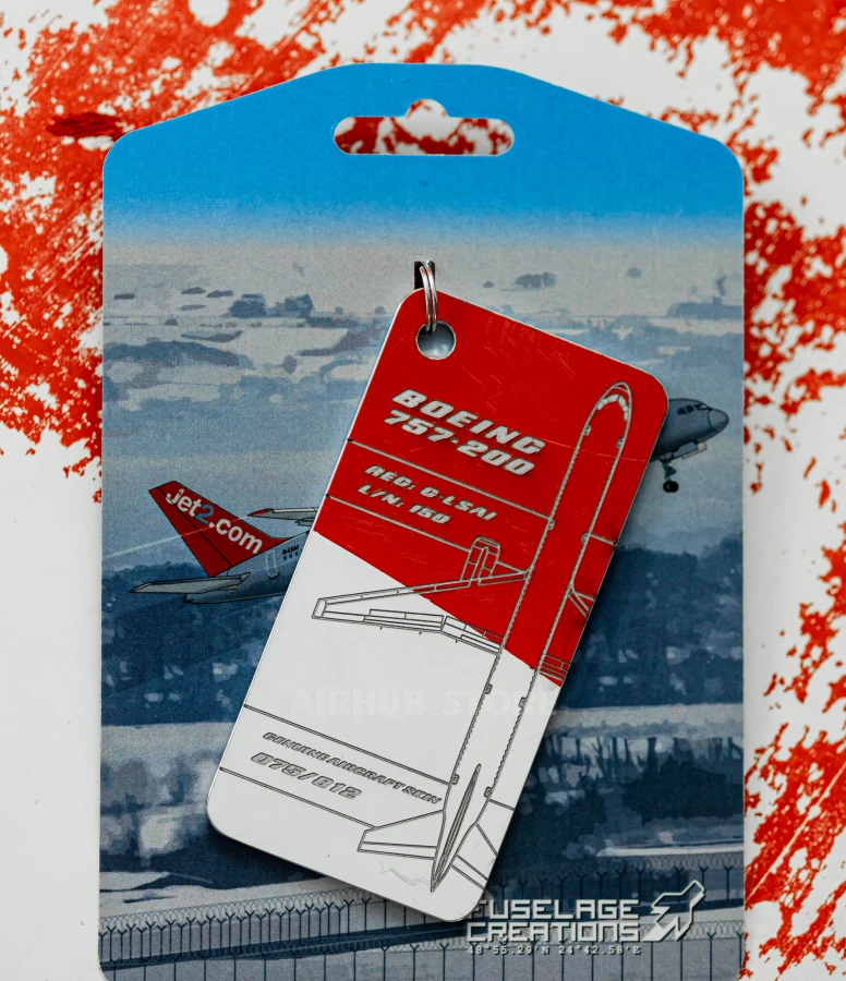 Boeing 757-200 Jet2 G-LSAI Keychain (Boeing 757 , Red/White , Aluminum)