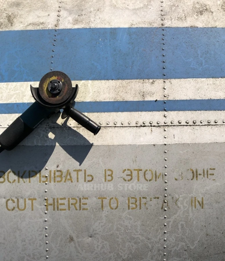 The keychain is made of real airplane skin, the airplane is cut into 286 pieces of keychains, each with its own unique number. The keychains are cut from the fuselage of a Mi-24P, military number 32 Red, registered as RF-95286. It was shot down near the village of Kozarovychi in the Kyiv region of Ukraine on March 5, 2022.