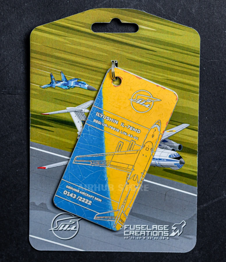 The keychain is made from the original fuselage of the legendary Il-76MD transport aircraft (UR-76618), known under the NATO name Candid. A unique piece of aviation history, created for the 5th anniversary of Fuselage Creations.