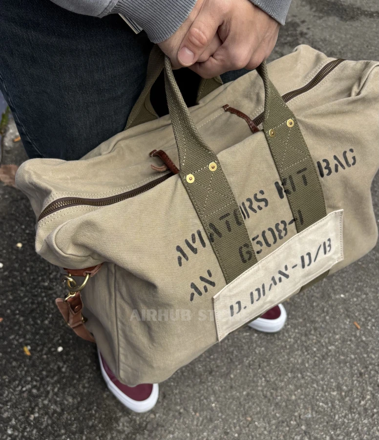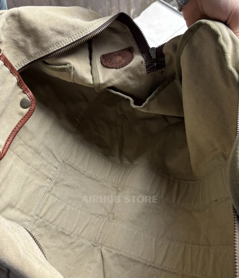 Thanks to thoughtful details such as YKK zippers, brass hardware, and reinforced seams, the bag not only looks authentic but also remains extremely practical to use. Its spacious compartment allows you to easily store your travel or weekend essentials, and the comfortable shoulder strap ensures comfort when carrying. It is a versatile accessory that combines military history and modern functionality. The bag looks great both in everyday urban style and when traveling, from weekend trips to long flights.