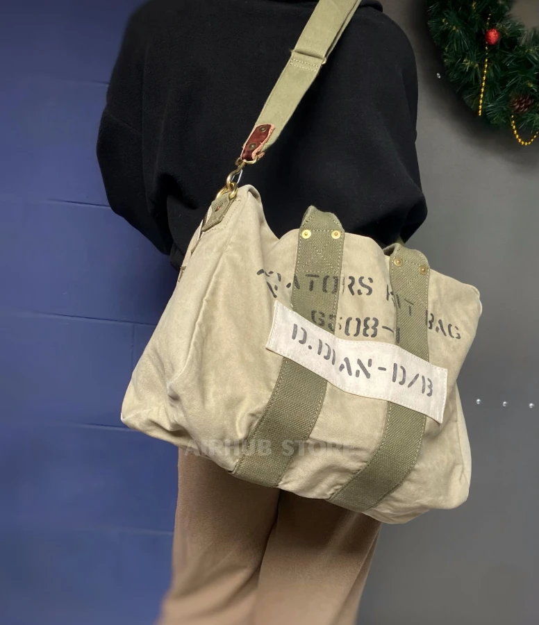 Thanks to thoughtful details such as YKK zippers, brass hardware, and reinforced seams, the bag not only looks authentic but also remains extremely practical to use. Its spacious compartment allows you to easily store your travel or weekend essentials, and the comfortable shoulder strap ensures comfort when carrying. It is a versatile accessory that combines military history and modern functionality. The bag looks great both in everyday urban style and when traveling, from weekend trips to long flights.