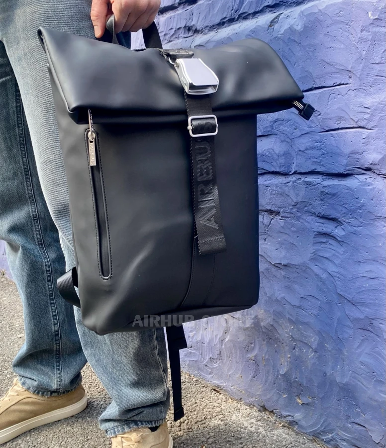 This Airbus backpack is designed in the style of modern aviation—featuring a minimalist design, functionality, and a distinctive seat belt buckle detail that evokes the seat belts found on airplanes. This detail not only looks striking but also gives the backpack the feel of a genuine aviation product.