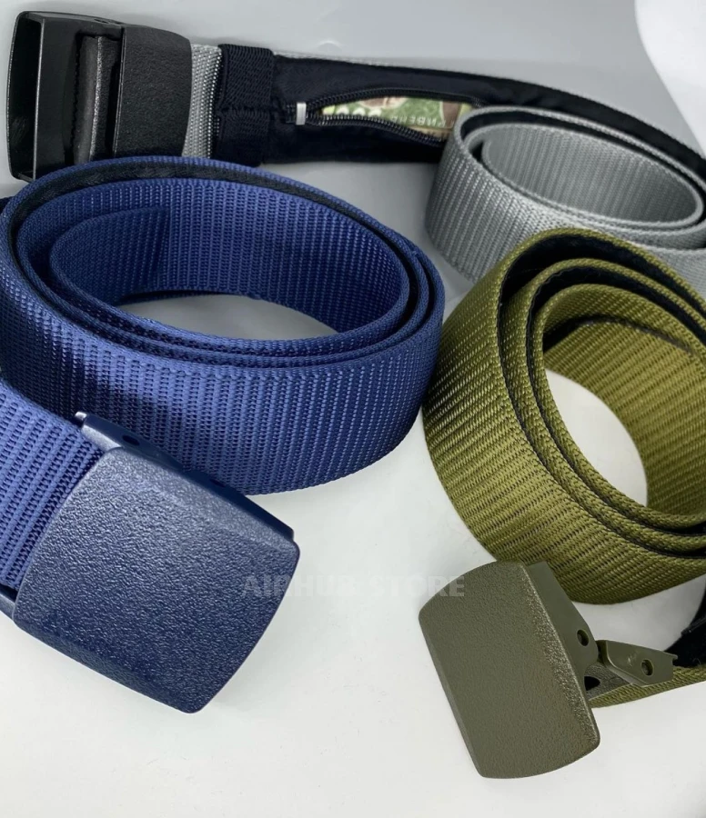 The fabric strap has no metal elements, so it does not rattle on the frame at the airport and does not require removal when passing through a metal detector. This belt also has a hidden pocket for storing money.