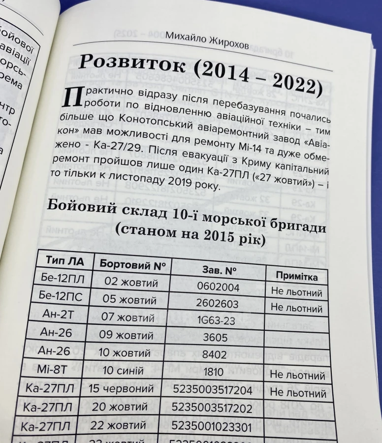 This is an in-depth and documentary study of the activities of the 10th Naval Aviation Brigade of the Ukrainian Navy over more than 30 years. The author Mykhailo Zhyrokhov describes both the structure and equipment of the brigade and the most important milestones in its combat history - from the annexation of Crimea to the full-scale invasion of Russia in 2022.