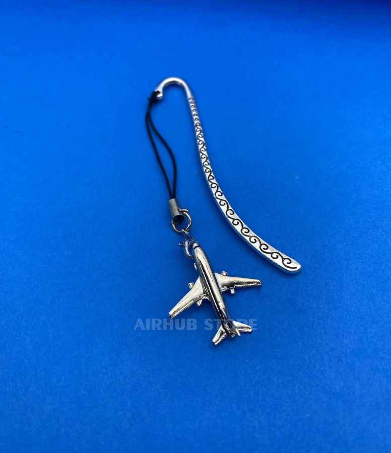 The Boeing 737 bookmark is a small detail that combines a love of books and the sky. Its metal base has a smooth shape with a decorative pattern, and a three-dimensional airplane, a miniature copy of a Boeing 737 passenger plane, is suspended at the end. It is not only functional but also aesthetically appealing: it holds the page securely and at the same time reminds you of flights, travels, and dreams.