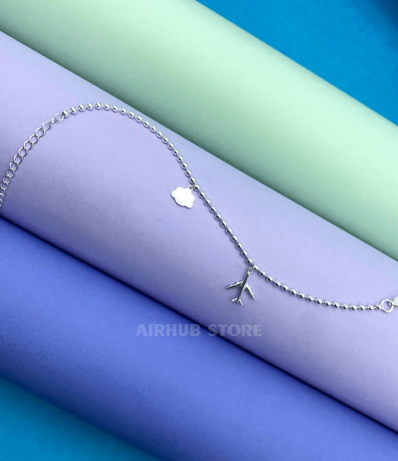A bracelet with an airplane in flight is a minimalist piece of jewelry for those who dream of the sky. The neat chain and delicate airplane on your wrist remind you of freedom, travel, and inspiration.