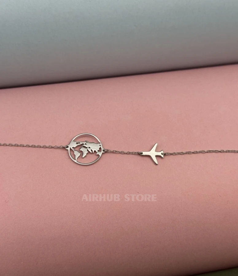 A silver bracelet with an airplane and the planet Earth is an ideal accessory for those who love travel and aviation. It is not just a piece of jewelry, but a symbol of the endless possibilities that travel and discovery bring. An ideal choice for those who want to carry a piece of their dreams with them.