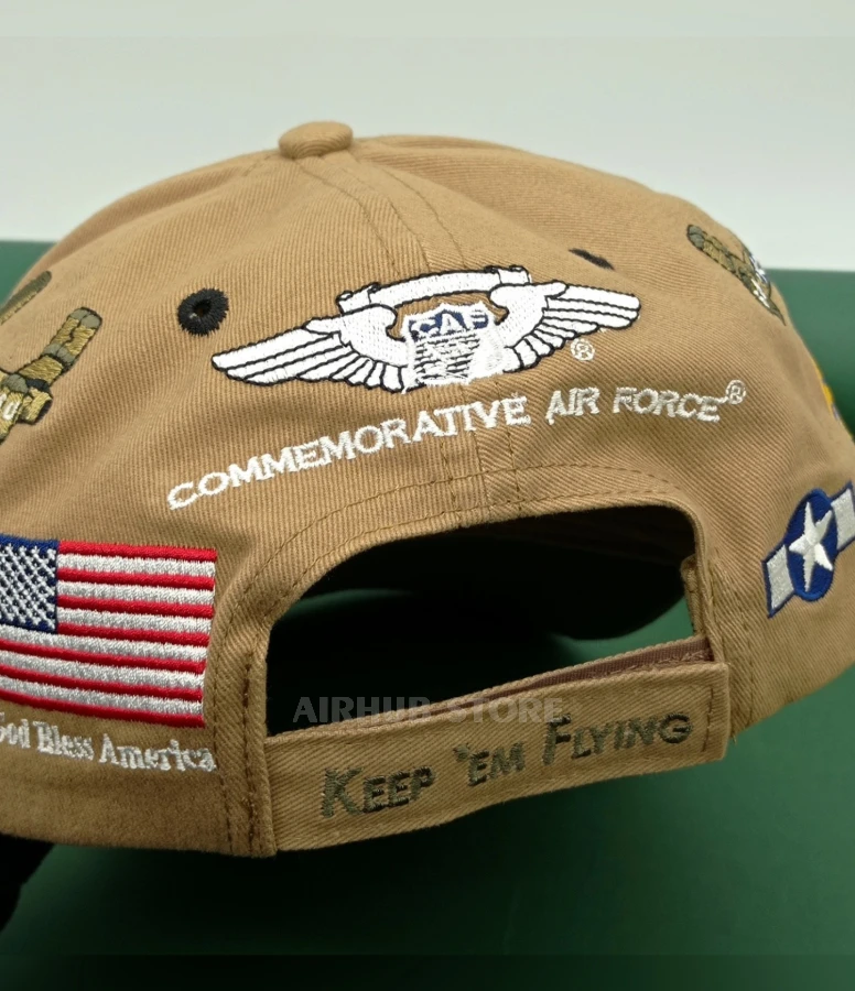 The back of the cap features the name of the Commemorative Air Force, a Dallas-based American non-profit organization that preserves, repairs and displays historic aircraft at air shows, mainly in the United States and Canada.
