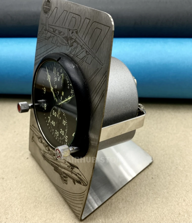 This watch is a stylish addition to your desk, workshop or office. It not only shows the time, but also reminds of the greatness of Ukrainian aviation. It is a perfect gift for a pilot, aircraft mechanic, engineer, or anyone who is a fan of Ukrainian aviation.