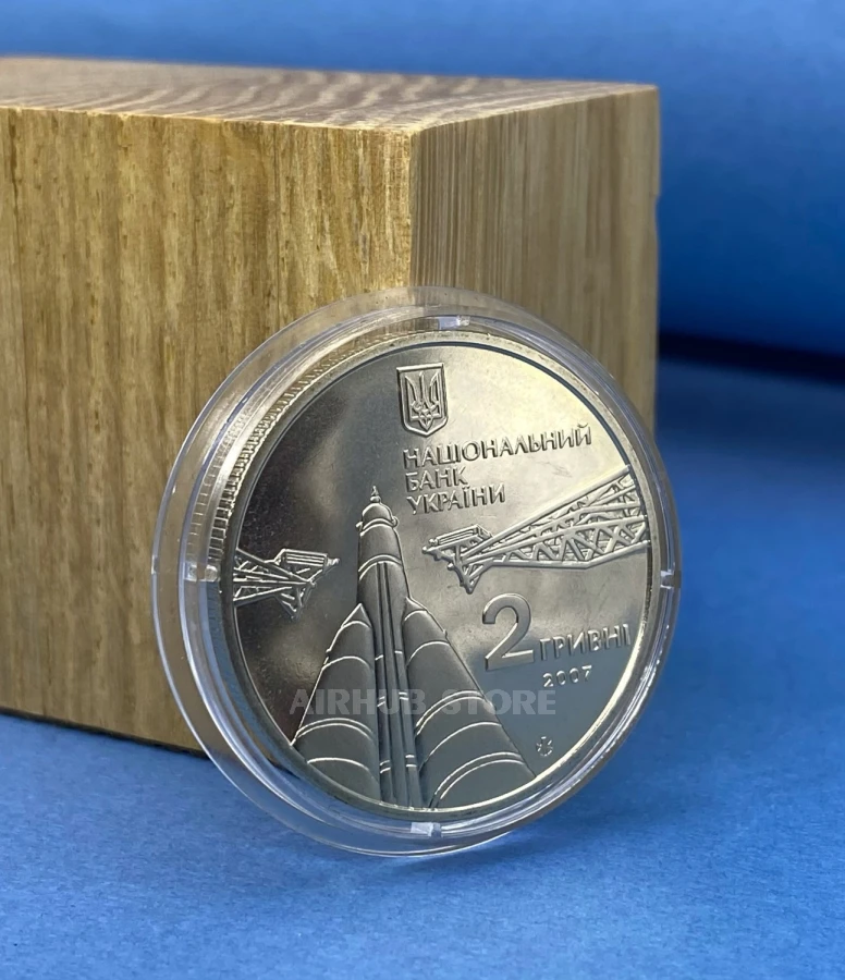 On the obverse of the coin at the top there is a small State Emblem of Ukraine, under which there is an inscription in three lines - NATIONAL BANK OF UKRAINE, a stylized image of a rocket before launch. Below - the inscriptions: 2 HRYVNI/ 2007 and the logo of the Mint of the National Bank of Ukraine.