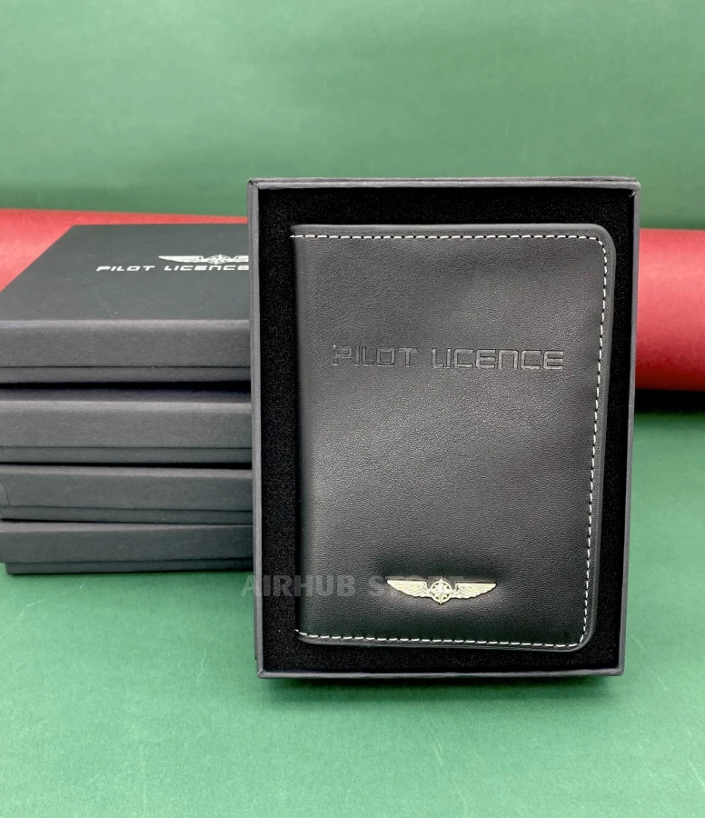 This elegant license cover is made of high quality eco-friendly leather with logo embossing and a silver metal wing on the front. The cover is equipped with RFID protection.