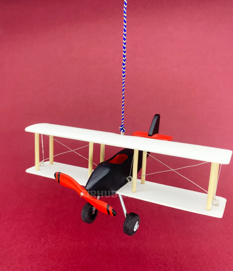 This wooden model of a biplane recreates the spirit of early aviation - the time when the first two-plane airplanes were conquering the skies. Meticulously handcrafted, it has a wooden body, fixed landing gear, taut decorative strings and a small propeller.