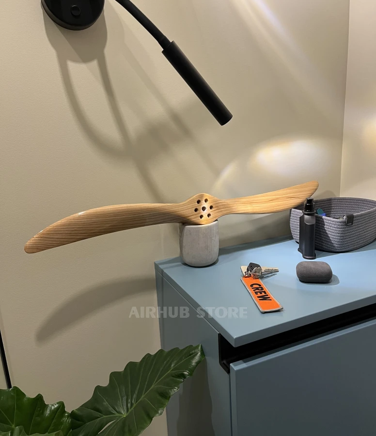 Between 1915 and 1930, artillery factories manufactured wooden propellers for the first airplanes under license. Today, such propellers are rare and can only be seen in museums. That's why we created decorative replicas made of ash wood, hand-crafted, preserving the shape and proportions of real aircraft propellers. The collection includes screws inspired by the German AEG C.IV spy plane and the legendary Blériot XI, which was the first to cross the English Channel. These elements will decorate the office, studio, coffee shop or home space of a true aviation fan.