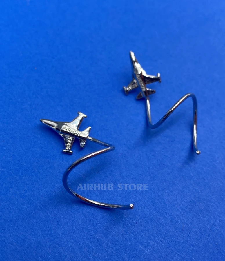 The F-16 is designed in a minimalist but recognizable style: the proportions, wings, and silhouette are accurately and neatly rendered, making the jewelry both elegant and technical. Thanks to its spiral shape, the earring wraps around the ear and looks as if the plane is literally enveloping it during a turn.