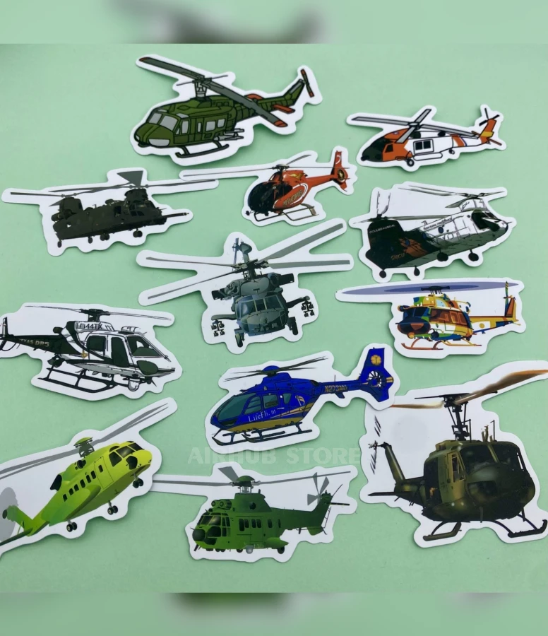 This sticker pack is perfect for all aviation fans, especially those who prefer helicopters. These stickers can be used to decorate a variety of objects, such as a laptop, phone, suitcase, or any other object with a smooth surface.