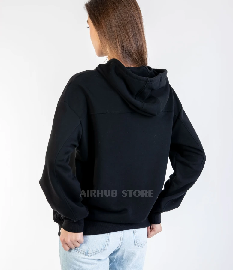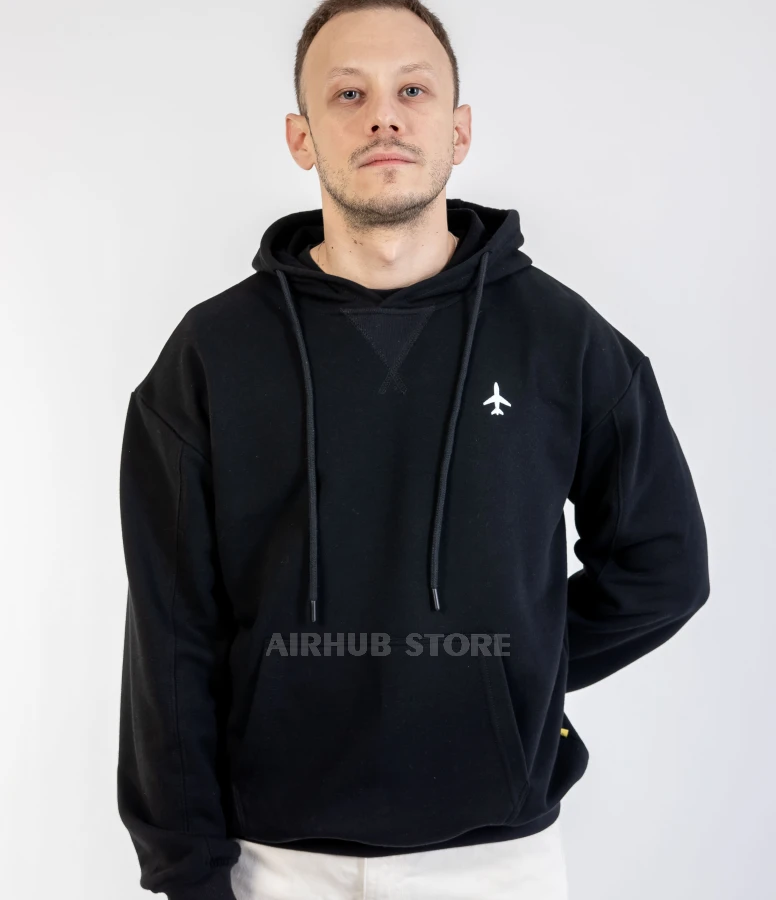 The design of this hoodie is inspired by aviation: a minimalist print with an airplane silhouette symbolizes a passion for travel and adventure. The black color adds elegance and can be easily combined with any wardrobe. Thanks to the thoughtful unisex cut, it is suitable for both men and women, providing a comfortable fit and freedom of movement.