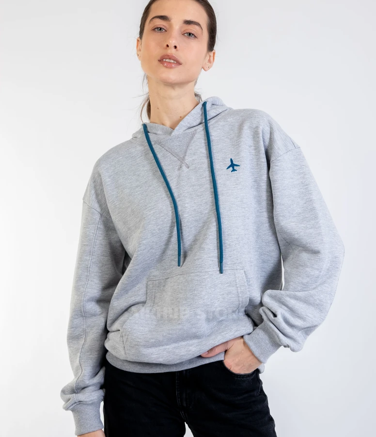Oversized hoodie with embroidered airplane unisex gray (100% Cotton , XS , Unisex)