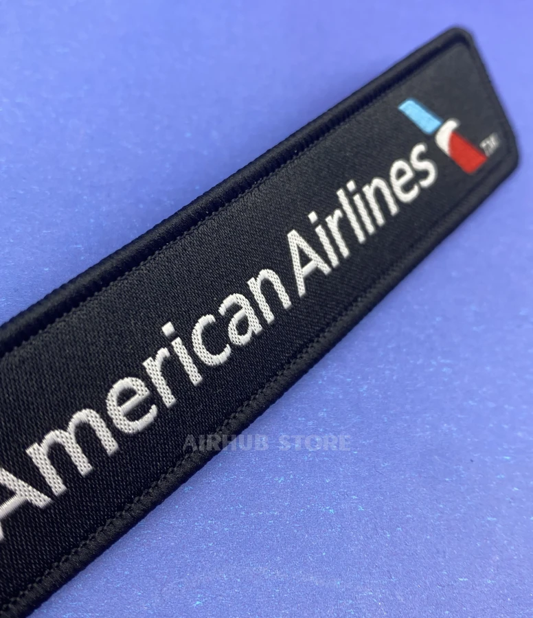This aviation keychain is made using a weaving technique that allows for the clearest possible reproduction of the American Airlines logo and inscription. The dense fabric structure makes the keychain durable and wear-resistant, while the metal ring ensures convenient attachment to keys or luggage.