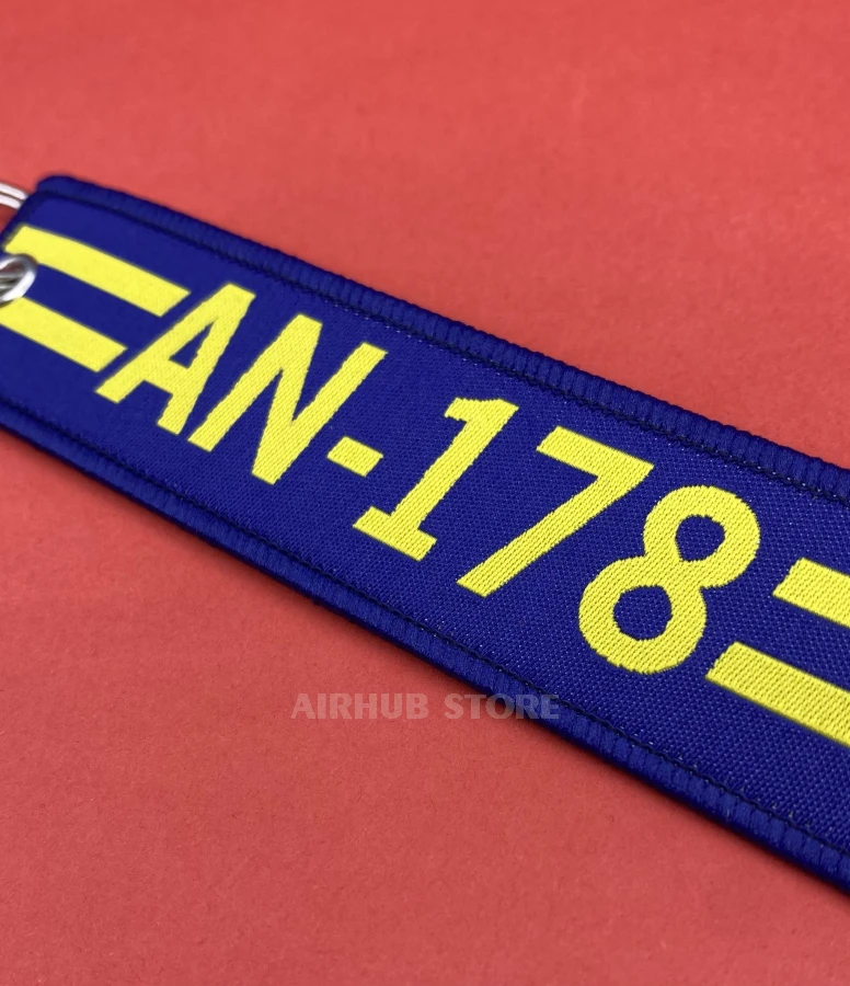The textile keychain is dedicated to the modern Ukrainian transport aircraft An-178. It is made in the rich colors of the Ukrainian flag - blue with bright yellow details.