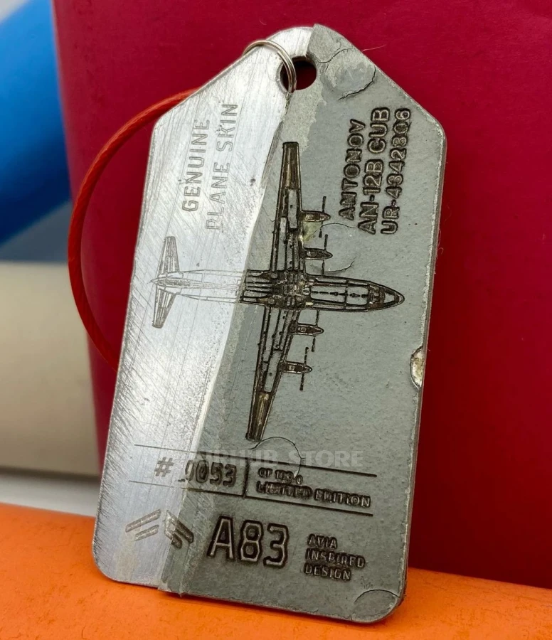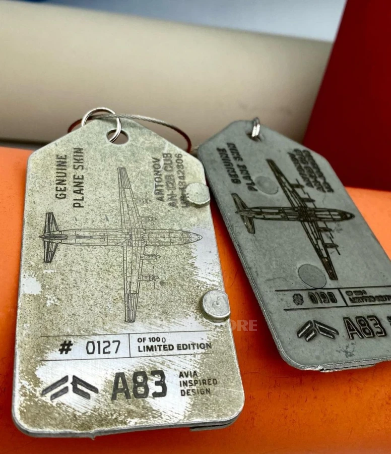This keychain was made from the skin of the An-12B aircraft. All keychains have a unique serial number, 1000 pieces were made.