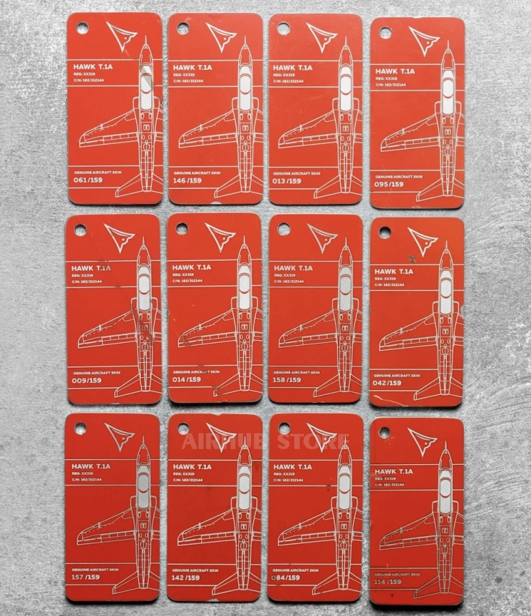Tags from the Hawk T.1A of the world-famous Red Arrows flying team of the Royal British Air Force. The Hawk T1A is a modified Hawk T1 designed to replace the Hawker Hunter in the RAF's tactical weapons units.