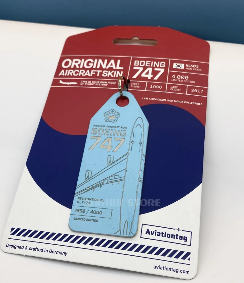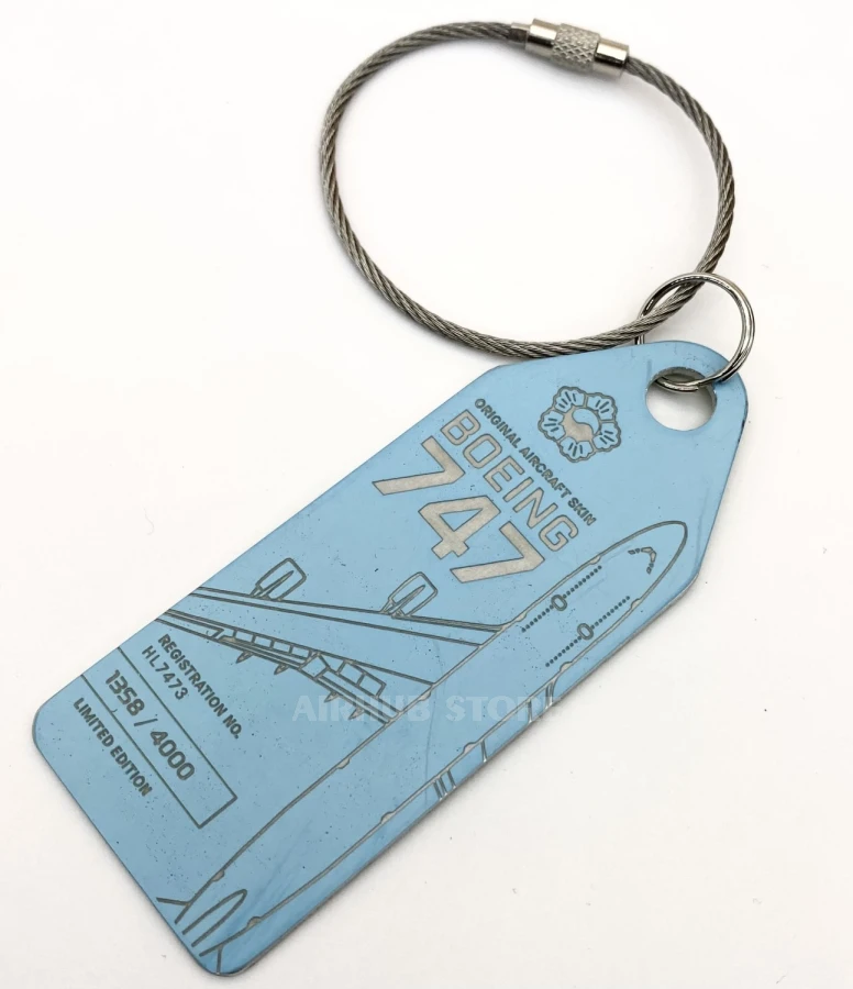 The keychain is carved from a magnificent Boeing 747 with registration HL7473 and manufacturer's serial number (MSN) 28335. The aircraft was delivered to Korean Air in 1996 and had an exceptional operational career until 2017.