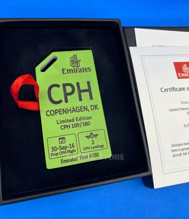 The front side of the tag has general information about the aircraft, and the back side is individualized, depending on the specific destination city. This makes each keychain a real collector's treasure. A portion of the proceeds from the sale goes to the Emirates Airline Foundation, which adds a good mission to the tag.