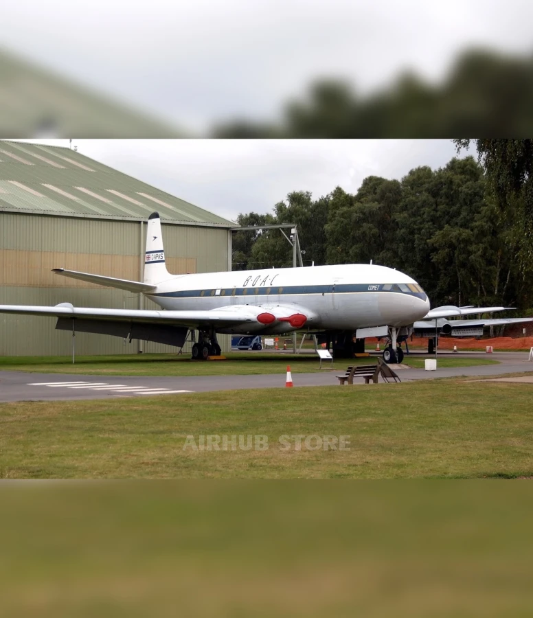 After a series of well-known accidents involving early Comets, related to metal fatigue and square windows, the aircraft was returned to the UK. In 1956, it underwent extensive modernization to the Comet 1XB standard, receiving reinforced structures, oval windows, and de Havilland Ghost Mk.4 engines. After that, the aircraft served as a flying laboratory for the UK Ministry of Supply under military number XM823 until 1967.