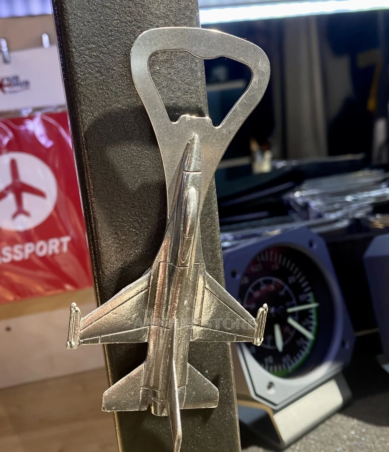 The F-16 Fighting Falcon magnet bottle opener combines an iconic fighter jet with practical functionality. The silhouette of one of the world's most famous fighter jets accurately conveys the proportions of the aircraft — from its swept-back wings to its distinctive fuselage.