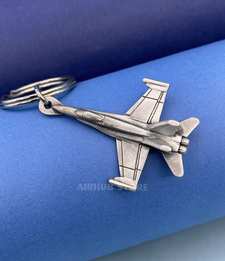 The F/A-18 keychain is a great way to express your affection for this aircraft. The F/A-18 Hornet is an American deck-based multi-role fighter developed in the 1970s. Today it is the main combat aircraft of the US Navy. It is also in service with a number of countries in Europe and Asia, and was used in military operations against Libya, Iraq, and Yugoslavia.