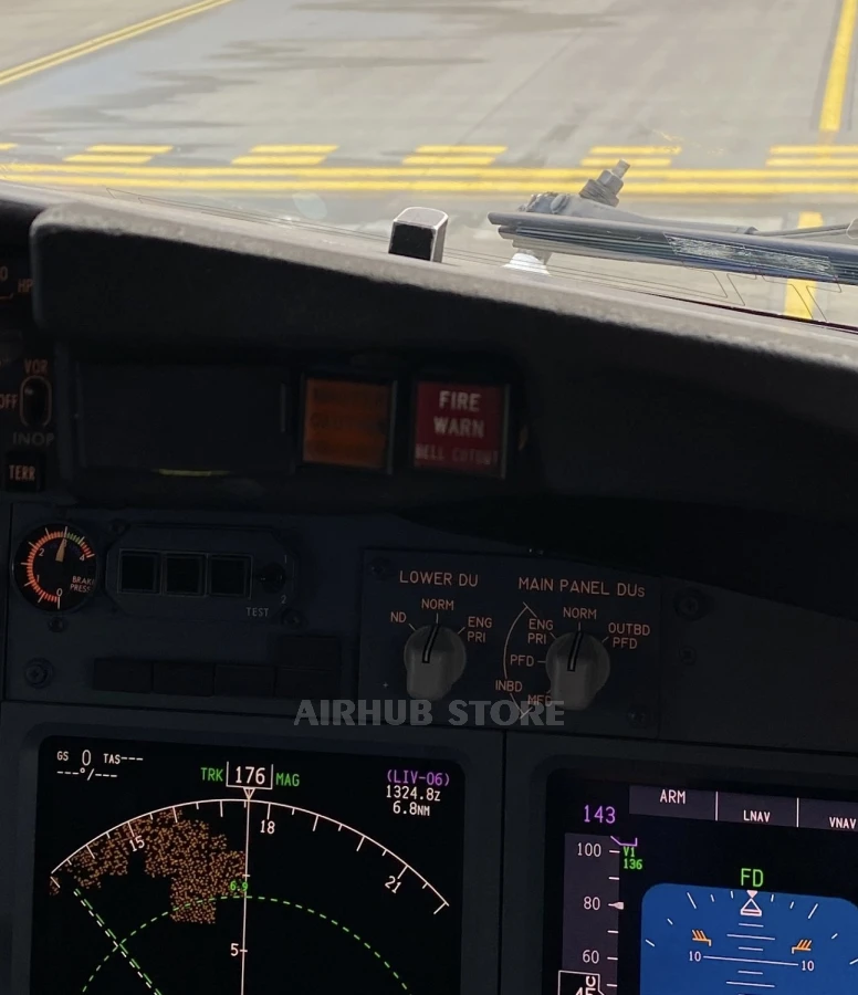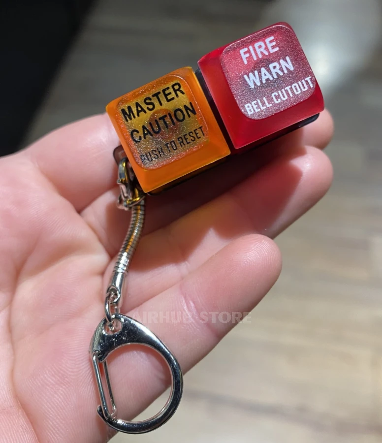 Boeing 737 warning simulator keychain with realistic FIRE WARN, MASTER CAUTION, A/P and OVERSPEED buttons. An ideal souvenir for pilots, aviation fans and collectors.