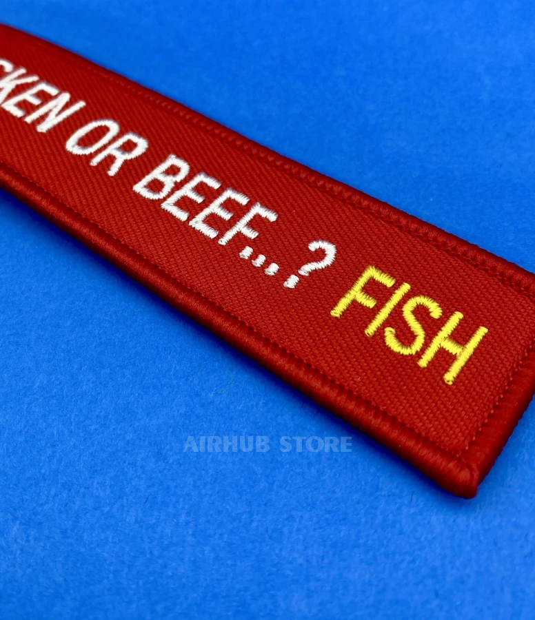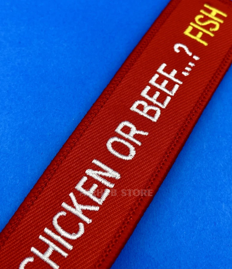 This aviation keychain plays on one of the most famous phrases heard on board an airplane - Chicken or Beef? A question that millions of passengers have heard during their flights. Now this moment of air travel has been transformed into a funny and recognizable accessory for everyday use.