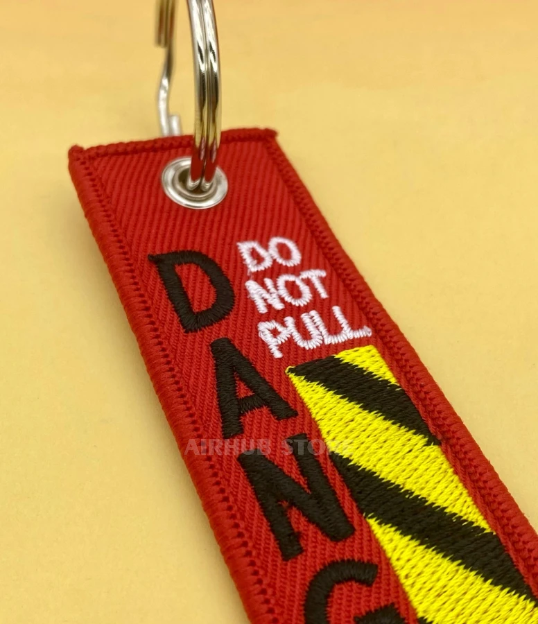 The Danger Do Not Pull keychain is an indispensable tool for marking items in plane.