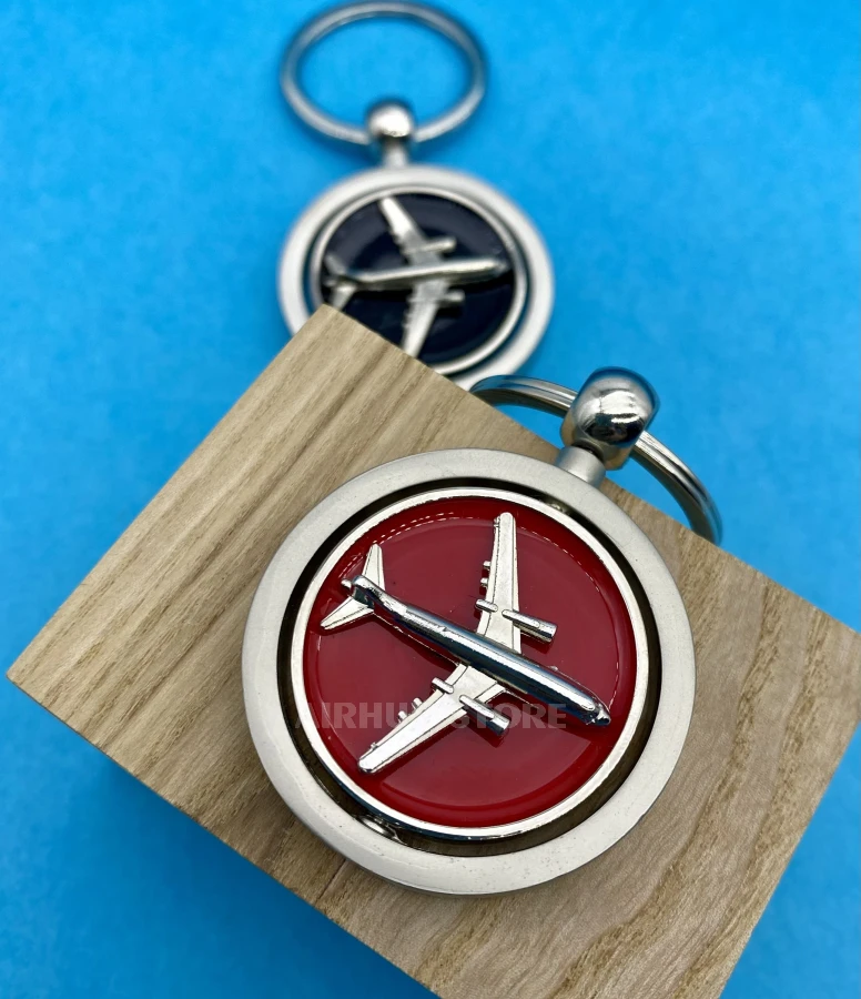 This keychain is in the shape of an airplane, inside the keychain rotates! It is easy to attach to your keys, backpack or bag.