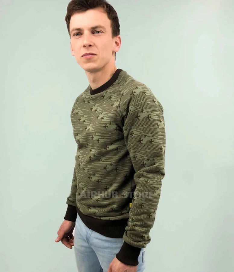 This sweatshirt is the perfect combination of style, comfort and personality. The deep green color adds nobility, and the unique airplane print emphasizes your love of travel and freedom. It's not just clothes - it's an expression of your character, courage and desire for new discoveries.