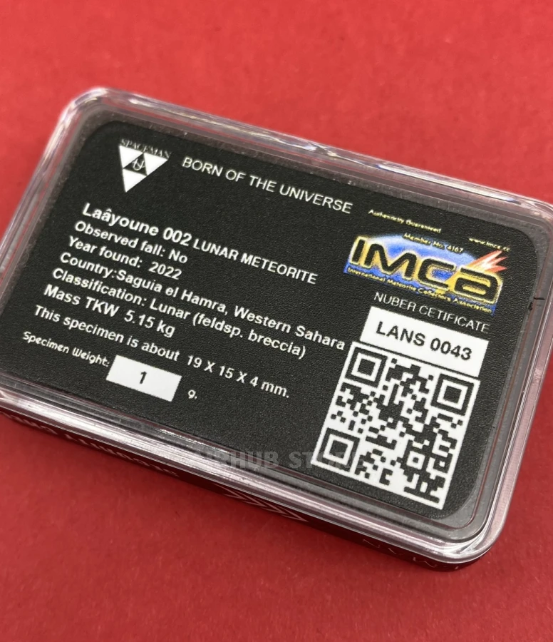 Found near the city of El Aayoune, Morocco, in January 2022 and purchased from Aziz Habibi, who found this meteorite. The authenticity of the meteorite is confirmed by a certificate from the Ukrainian company SPACEMAN, which is a member of the organization https://imca.cc under registration number 4167. IMCA is the most respected organization in the world of meteorites. SPACEMAN is also a member of The meteoritical society and the Global Meteorite Association and is the only representative of these organizations in Ukraine.