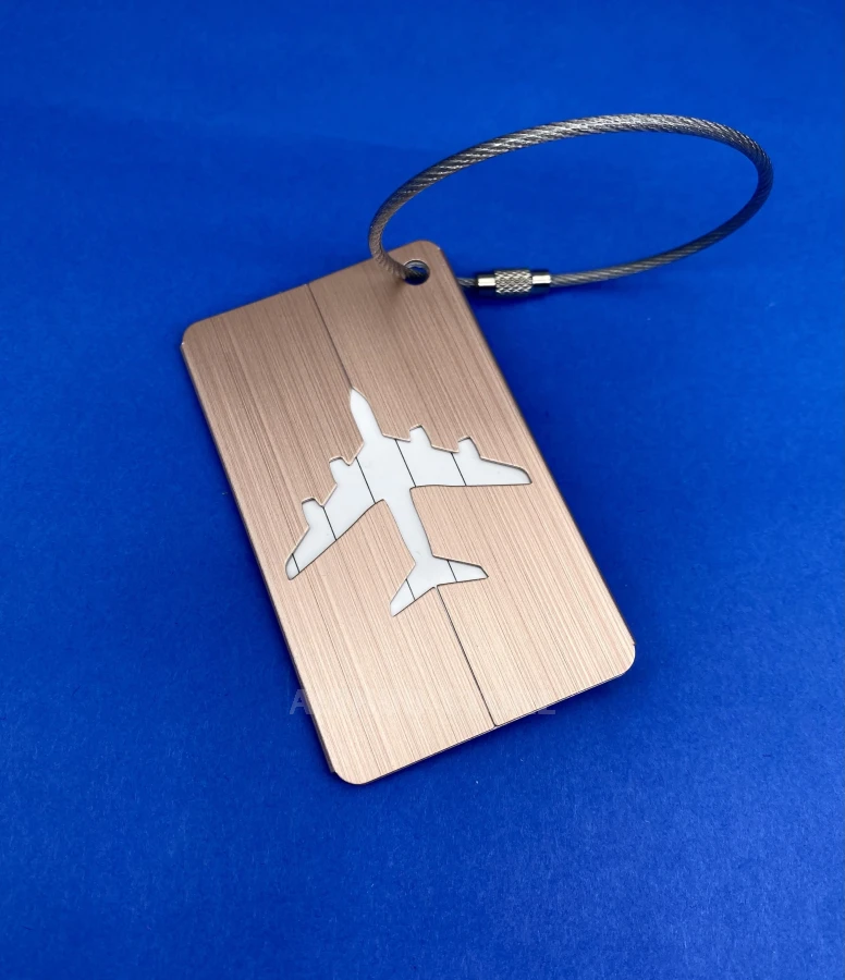 The tag is made of durable metal and has a neat coating with a clearly cut outline of an airplane. This gives it a modern, minimalist, and at the same time thematic look — ideal for those who love aviation details in everyday items.