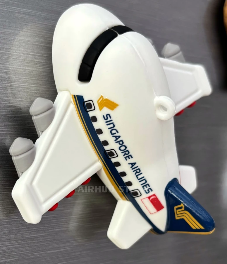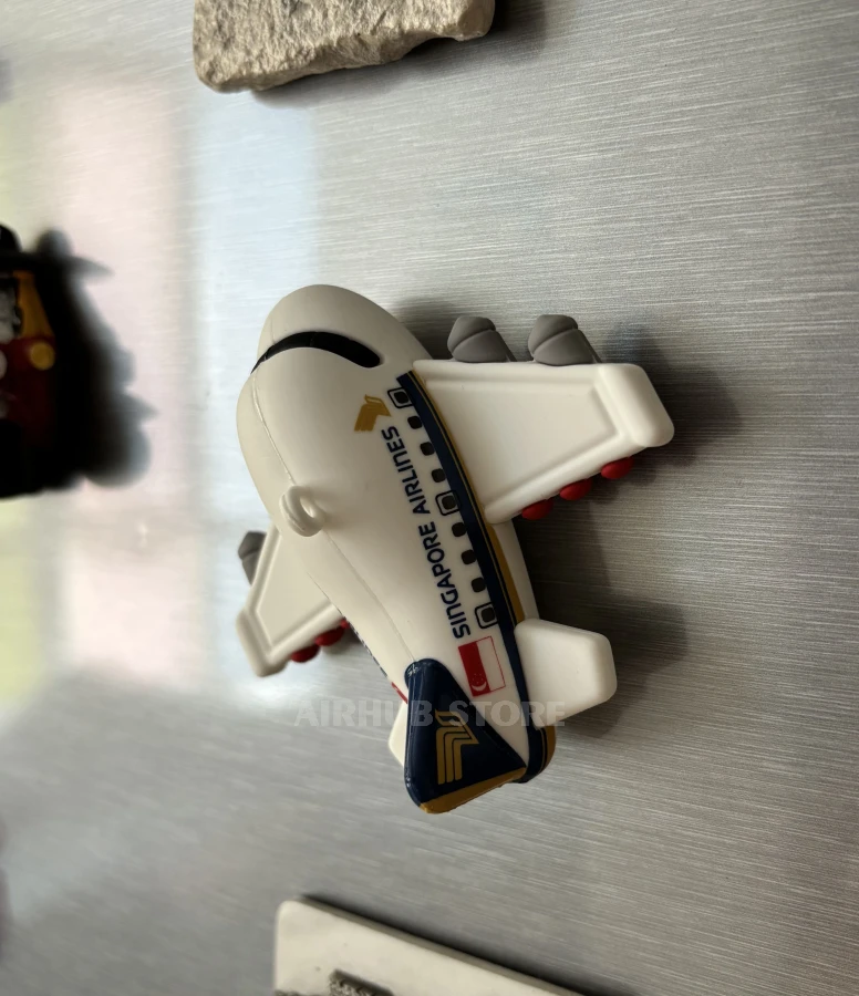 This three-dimensional magnet is made in the form of a distinctive passenger airliner with the livery of Singapore Airlines, one of the world's most famous air carriers. The design of the product attracts attention with its details: a pattern of windows, branding elements, and a recognizable tail feather with a logo.