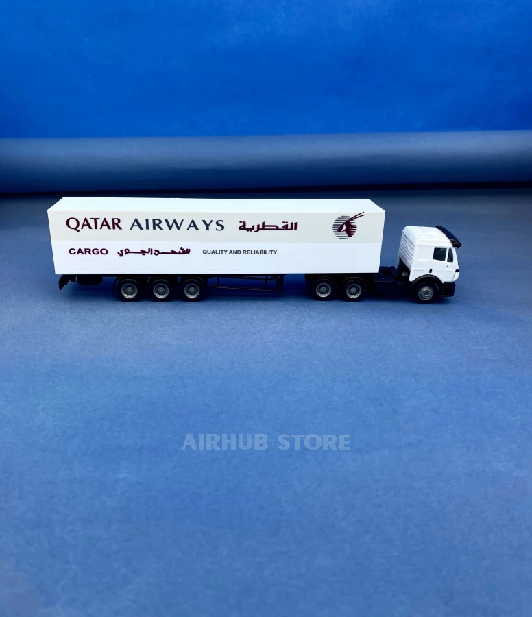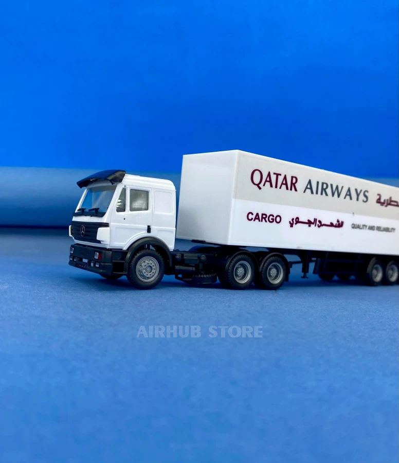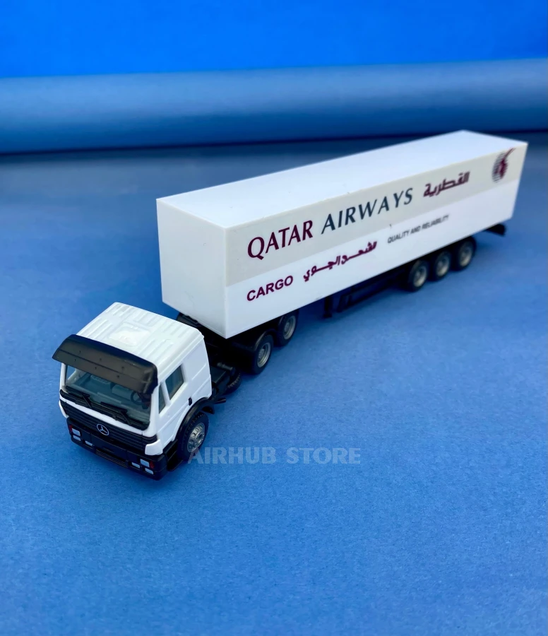 Herpa products are traditionally distinguished by their precision and attention to detail, making this Mercedes-Benz SK with a Qatar Airways Cargo semi-trailer a worthy addition to the collection of freight transport and aviation logistics enthusiasts.
