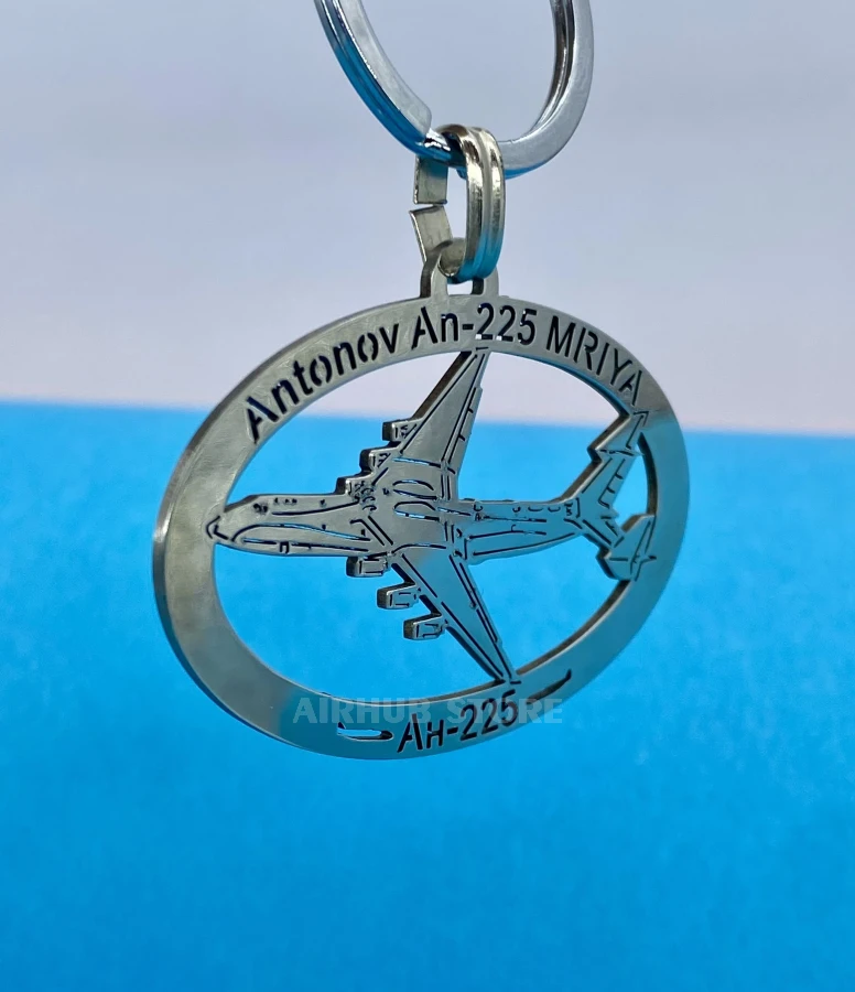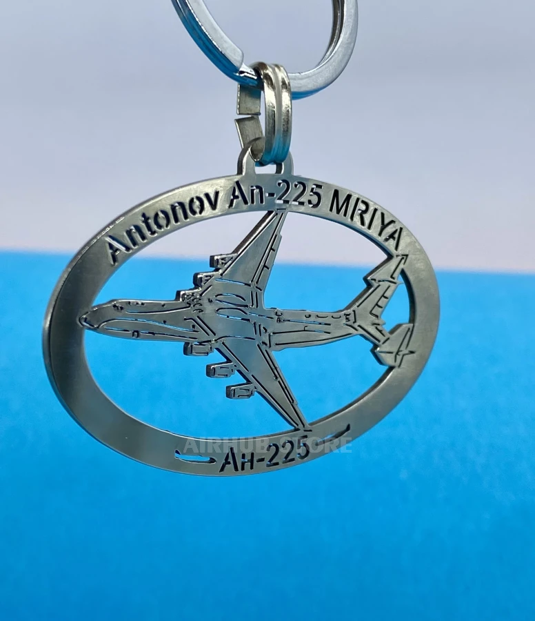 A bright double-sided blue keychain with the popular Antonov An-225 airplane, it is easy to attach to your keys, backpack or bag.