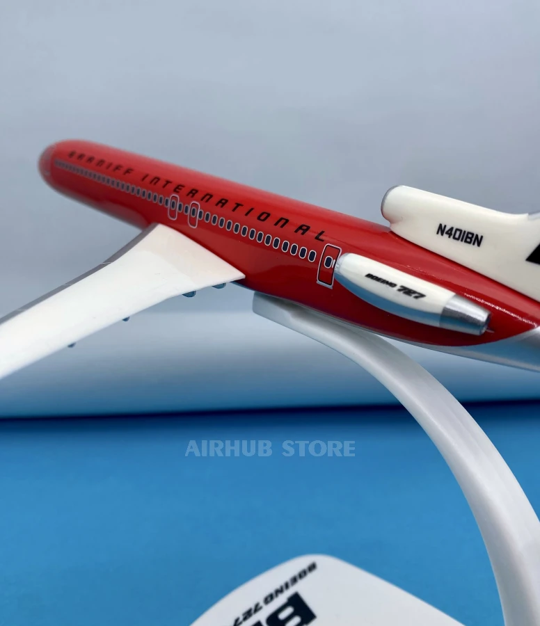 This large-scale model of the Boeing 727-200 recreates one of the most iconic jet airliners of the 1960s and 1980s. Braniff International Airways made civil aviation history with its revolutionary approach to design. The Solid Color livery series was a real breakthrough at the time, and the all-red Solid Red version is one of the most famous and daring examples of 20th-century aviation branding.