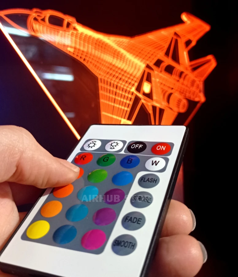 The MiG-29 night light with 3D effect and remote light control is the perfect way to create an aviation atmosphere in your room. Feel the power of the Ukrainian sky with a night light in the shape of a MiG-29 fighter jet - a real decoration for your home or workplace. Ideal for both children and adult fans of military aviation.