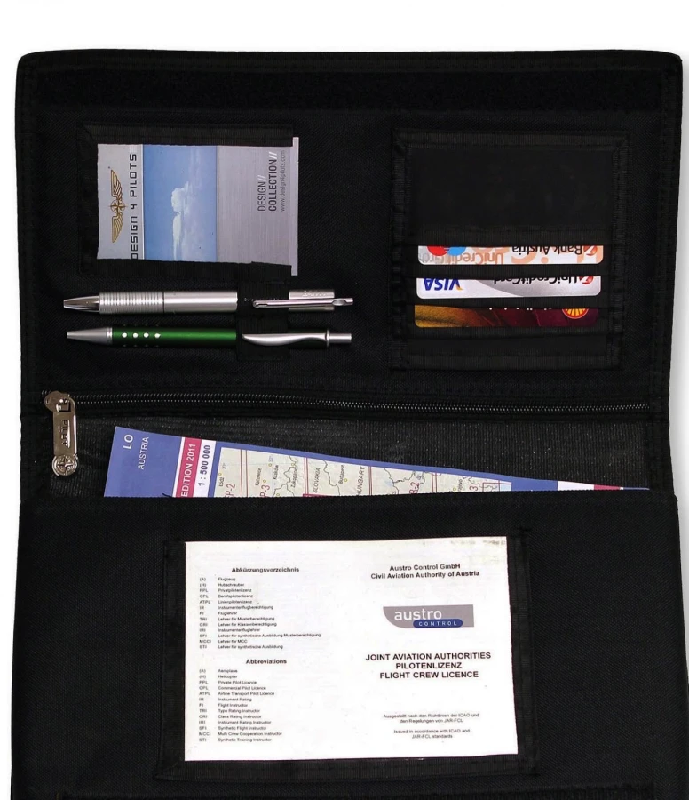 This multi-purpose organizer is made from recycled nylon, a durable and water-resistant material that meets today's environmentally conscious requirements. With its compact size and clever internal organization, it conveniently holds documents, writing utensils and small accessories. It is an ideal choice for pilots, travelers, or anyone who appreciates order in details.