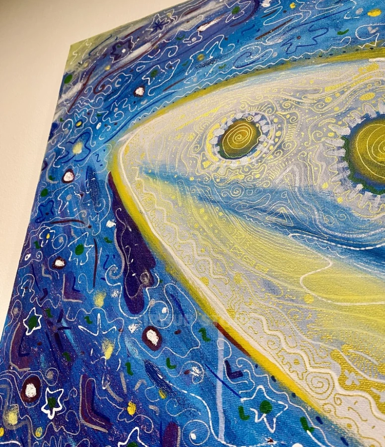 The work was presented at Zhulyany airport as part of an exhibition space dedicated to aviation. The technique is mixed, the artist experimented with textures, layers and visual effects, creating a voluminous and meditative surface.