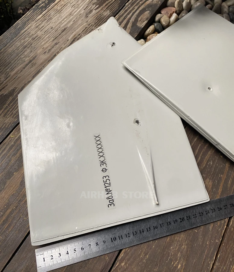 We offer for sale an original fragment removed from a real mini-drone, which resembles the Shahed model in shape but is more compact in size. The part has visible factory markings, stamps, and traces of fasteners. This part was handed over to us by the military. Earlier, it was reported in the news that the Ukrainian military had discovered a new drone belonging to the Armed Forces of the Russian Federation, which targets moving military objects on the front line. This drone resembles the Shahed kamikaze drone in shape, but has less power.